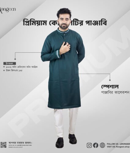 Dark Green Premium Micro stitch Panjabi – Zynoor