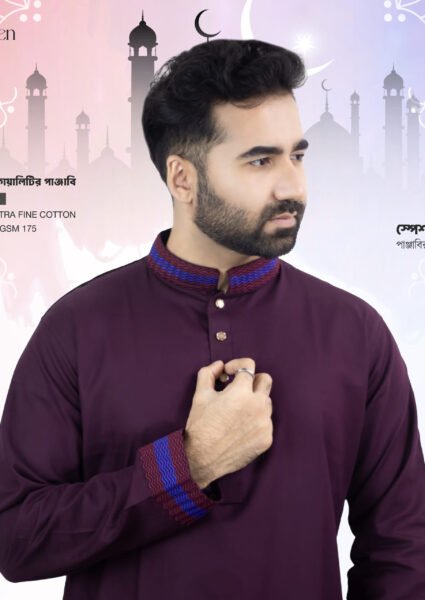 Zynoor Premium Microstitch Solid Panjabi – Maroon