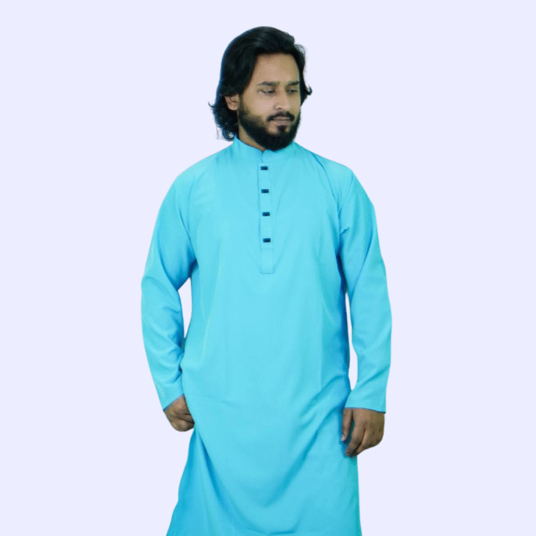 স্কাই ব্লু কালার প্রিমিয়াম মাইক্রোস্টিজ সলিড পাঞ্জাবি