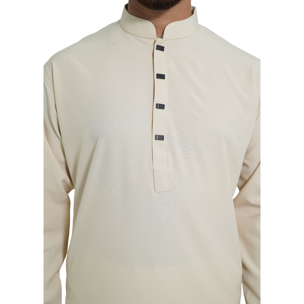 ক্রিম কালার প্রিমিয়াম মাইক্রোস্টিজ সলিড পাঞ্জাবি