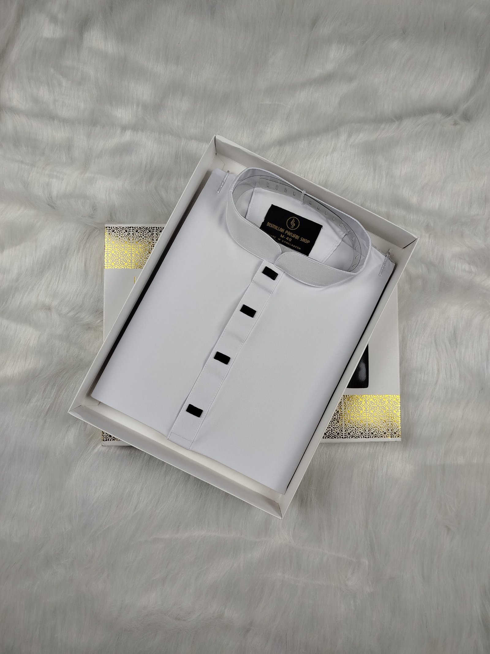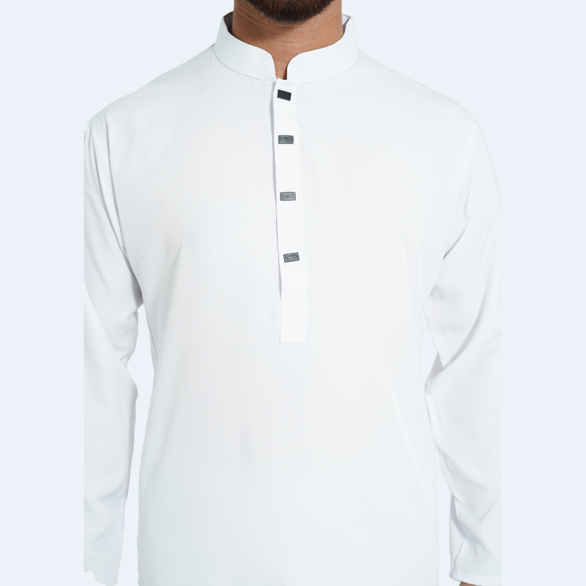 সাদা কালার প্রিমিয়াম মাইক্রোস্টিজ সলিড পাঞ্জাবি